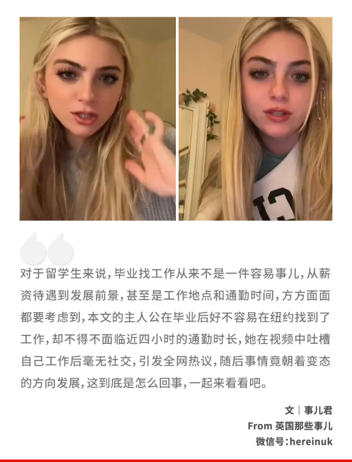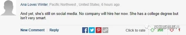 “都这样了,她还在社交媒体上(大讲特讲)。没有公司会雇佣她了。她虽然有大学学位,人却不怎么聪明。”