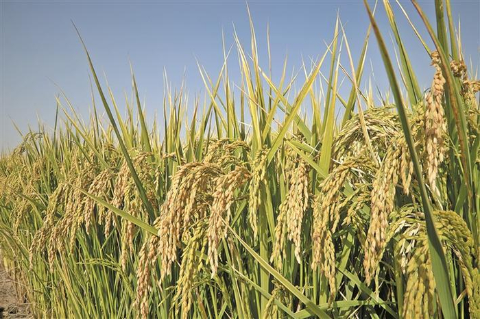 十四师昆玉市二二五团玉泉镇拉依苏村种植的“羊脂籽米”(资料图片) 。充足的光热资源和富锶泉水,让当地的“羊脂籽米”驰名中外。魏红妹 摄
