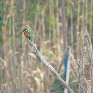 漫步至河边,隐隐有翠鸟叫。周颖琪扫视一圈发现了它的身影,把望远镜递给我,“前面菜地做了一排小篱笆,篱笆最左边那一根朝左斜出来的枝,头顶上站了一只翠鸟。”我透过望远镜搜寻,愣是没找到。