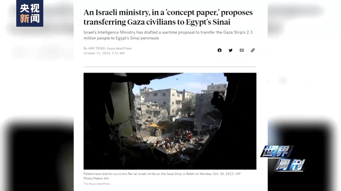 10月31日,美联社援引以色列新闻网站“本地电话”(Sicha Mekomit)的消息称,以色列情报部门曾在10月13日起草了一份10页的“概念性文件”,计划将加沙230万人口全部迁移至埃及的西奈半岛。据报道,10月29日,美国总统拜登在同埃及总统塞西通电话时曾谈到了这个问题。