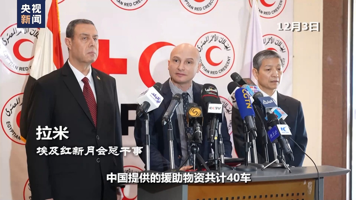 埃及红新月会总干事 拉米:中国提供的援助物资共计40车,包括救灾物资、卫生物资以及医疗物资。