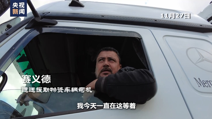 运送援助物资的车辆司机赛义德表示,有很多车在拉法口岸排队,他已经在这里待了4天,不知道什么时候可以把物资运进去。