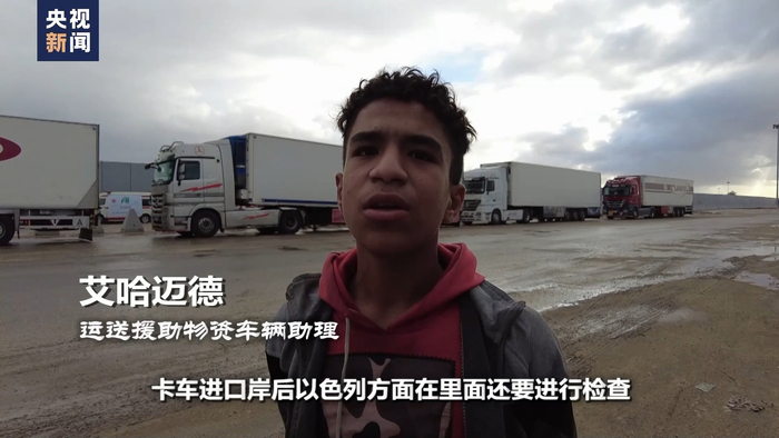 运送援助物资车辆助理 艾哈迈德:卡车进口岸后以色列方面在里面还要进行检查,这些送物资的卡车进去了也还要排队等检查,可能要等两三天。我在这里已经等三天了。