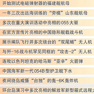 另一方面,由于台海局势的持续紧张,解放军接连展开针对“台独”的威慑行动,多种重量级装备在媒体上的出镜频率颇高。例如在美军接连吹嘘将“海马斯”火箭炮部署印太针对中国的背景下,解放军在代号“联合利剑”的东部战区合同战役演习中,展示了新型远程箱式火箭炮的强大打击能力,并对“台独”分裂势力与外部势力勾连挑衅发出严重警告。今年6月,台湾媒体就普遍注意到大陆官方证实了轰-6K轰炸机已经实现了“夜间绕岛巡航”,“预计这种行动将成为常态”。