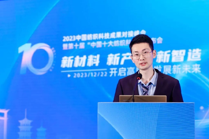 在科技成果推介环节,青岛大学纺织服装学院院长许长海作《高耐碱高耐氧漂分散染料的制备与应用关键技术》报告,江苏新视界先进功能纤维创新中心有限公司研发副部长张林作《气纺纳米纤维规模化制备成套技术及产业化》报告,北京叠加态技术有限公司首席科学家钟飞鹏作《绝热材料在服装、鞋材上的保温应用》报告,中纺院创新中心生物基与高性能纤维室主任李婷作《Lyocell长丝高效制备及产业化技术开发》报告。