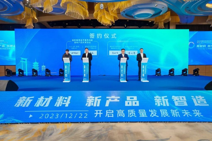 中国纺织科技成果对接峰会的另一重要使命就是为行业创新成果搭建推广和对接平台,进一步打通创新成果输送应用通道。会上,共有6组企业签约。通用技术高新材料集团有限公司分别与安踏体育用品集团有限公司、福建华峰新材料科技有限公司签署战略合作协议;天津工业大学与泉州市纳通智能科技有限公司签署战略合作协议;三六一度(中国)有限公司与盛意成石墨烯科技(苏州)有限公司签署“宙斯盾黄金甲蓄热功能里布产品”开发协议;河北中电华拓科技有限公司、中纺新材料科技有限公司与河北华强科技开发有限公司签署战略合作协议;海西纺织新材料工业技术晋江研究院、北京中丽制机工程技术有限公司签署战略合作协议。