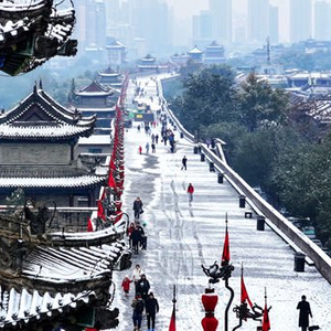 在唐风唐韵的大唐不夜城,从写满诗词的灯饰下穿过,与满街的唐装仕女擦肩而过,“李杜”正于灯火阑珊处邀游客吟诗作对;登临600余年历史的古城墙,脚下是铁马金戈的岁月沧桑,远眺是高楼林立的繁华都市,俯瞰是熙熙攘攘的人间烟火……一城之内、转眼之间,古老与现代、厚重与时尚相得益彰、毫不违和。