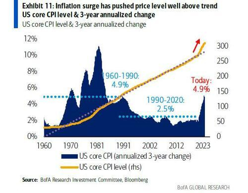 这是否意味着,通胀已经完全融入美国经济?只有彻底的通缩才能将其推回长期趋势?