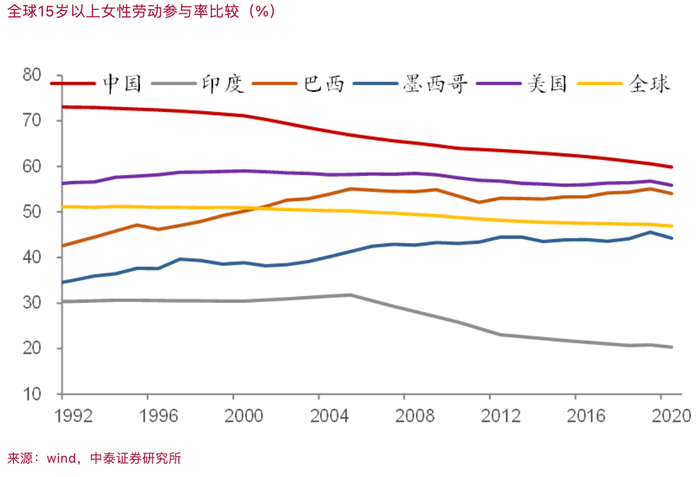 按国家统计局数据,至2023年9月,我国企业就业人员的周平均工作时间为48.4小时,在全球名列前茅。从女性劳动参与率看,我国也领先于大部分发达经济体和发展中国家。