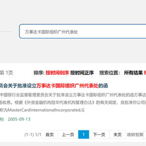 值得注意的是,12月25日,南财记者在国家金融监督管理总局网站重新查阅公告原文时,已无法查询相关内容。从工商信息登记状态来看,万事达卡国际组织广州代表处仍处于正常状态。