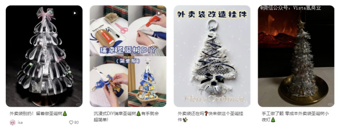 有人以之修炼手工技能,专攻“变废为宝”,下手如有小神龙俱乐部,攒下来的奶茶外卖袋、咖啡杯,剪剪贴贴就成了简易圣诞树。
