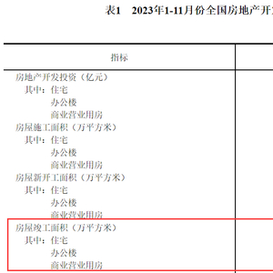 各地“保交楼”工作持续推进,拉动全国房屋竣工面积的增长。国家统计局数据显示,今年1-11月份,全国房屋竣工面积65237万平方米,增长17.9%。其中,住宅竣工面积47581万平方米,增长18.5%。