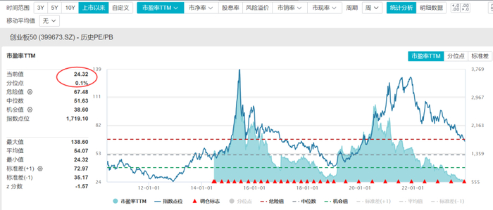 从最新估值来看,大幅调整过后,目前创业板50指数估值水平已是历史最低,可能迎来了难得的逆向布局时机。其最新市盈率(PE-TTM)仅为24.32倍,较2021年7月阶段高点时的67倍PE,大幅下降了64%。放眼2024年及更长远未来,随着经济基本面好转和市场情绪回暖,有望带来业绩和估值的双提升。