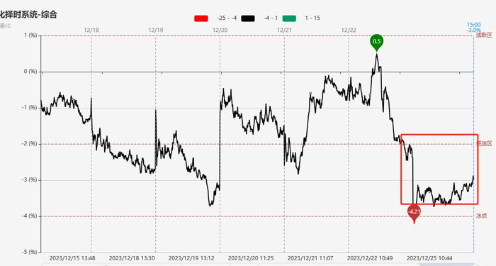 指标显示,今早短线情绪低开后快速跳水一度跌破冰点区,指数此后震荡翻红,带动多个热点板块展开修复动作,使得短线情绪出现企稳并展开震荡回升,不过最终仍报收于低迷区下方。