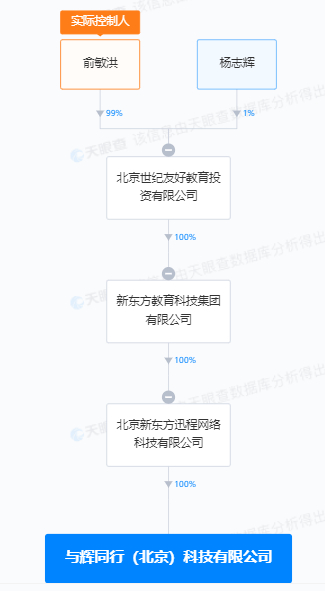 从股权穿透可见,新东方迅程系新东方教育科技集团有限公司(下称“新东方教育集团”)的全资子公司。而新东方教育集团系东方甄选的控股股东,即新东方迅程与东方甄选系关联公司。