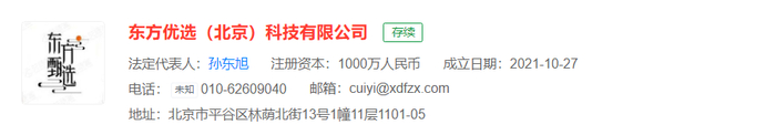 而东方优选(北京)科技有限公司的法定代表人为孙东旭。