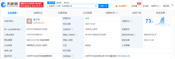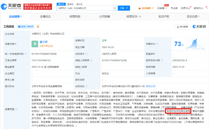 天眼查显示,与辉同行的经营范围包括日用品批发、互联网信息服务、出版物零售、演出经纪、营业性演出、旅游业务等。