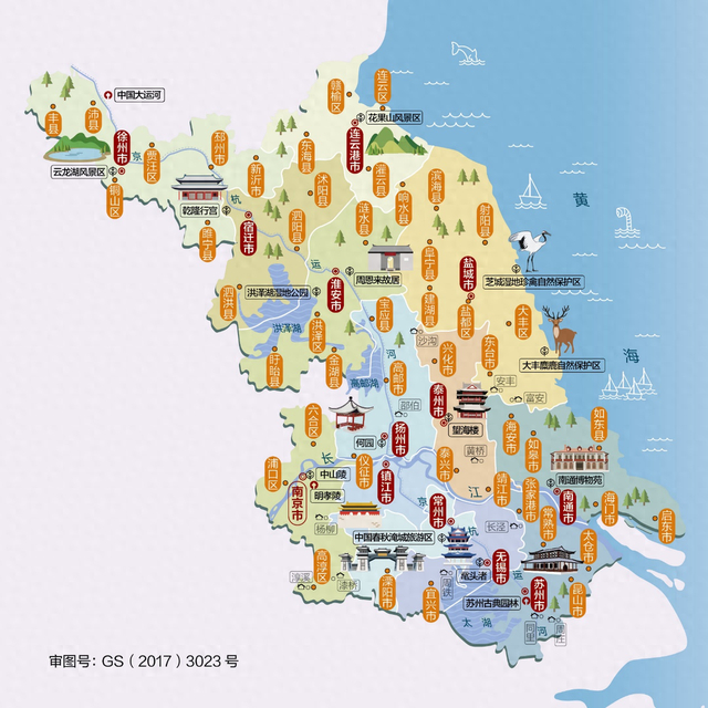 “江苏”的“江”来自“江宁”,“苏”字来源于“苏州”,如此,“江苏”似乎就是得名于江宁、苏州首字合称了。但是,“江苏”实际是一个高度简化后的称谓。若只是简简单单地两地首字合并,无法诠释“江苏”的深刻内涵。