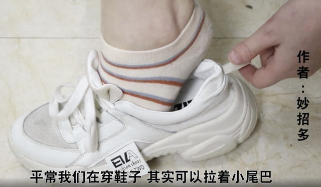 穿鞋时,有时候比较难穿,还容易把鞋后跟踩塌,这时只要拉着这个小尾巴,就可以轻松穿鞋。