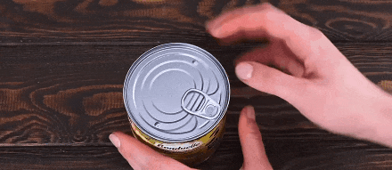 有时易拉罐难打开,太用力就会把拉环拉断。其实,只要稍微改变一下:先把拉环向上掰直,开一个小口,然后将其旋转180度,再向上拉,就能轻松拉开盖子。罐头等类似包装同样适用。