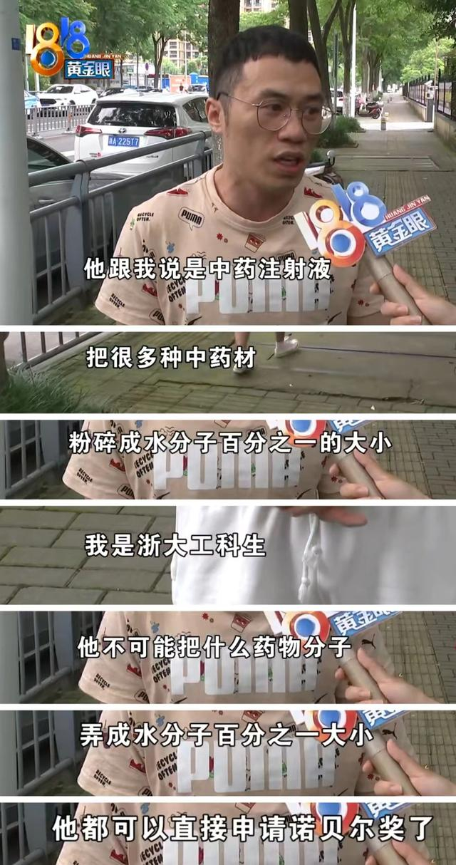 气愤的紫金陈在微博倾诉自己的遭遇,表示,“我也不要退钱不要赔偿,单纯曝光……”在节目组的帮助下,“小分子祛炎针”的成分终于搞清了——其实就是麻醉剂、生理盐水和维生素,几种药物的费用叠加,最多五六十元。
