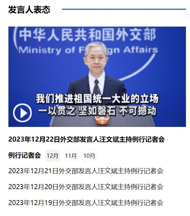 外交部的官网上显示12月24日并没有例行记者会,而且那一周都是汪文斌在主持记者会,这些都是官网公开展示的事实,大家可以自己去看。