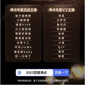 日前,2023百度沸点榜单如期揭晓,涵盖年度现象、年度作品、年度人物、年度创作者、年度主播等5个系列共13个榜单。该榜单是百度每年年底,基于百度搜索和资讯大数据发布的盘点榜单,综合呈现网民过去一年最关注的焦点议题。