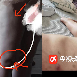 事主张女士提供的抽脂手术后照片,腿部出现凹坑