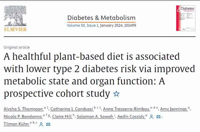 研究结果发现,健康的植物性饮食,水果、豆类、坚果、茶和咖啡、蔬菜、全谷物,与较低的2型糖尿病风险相关,在机制方面,除了与较低的BMI和血糖以外,还与改善肾功能和肝功能以及降低炎症有关。