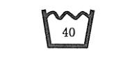 ● 可水洗 ● 最高洗涤温度 40°C(数字表示最高温度) ● 常规工艺 | |