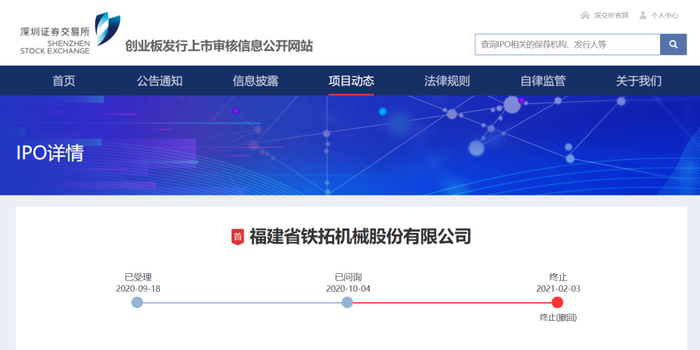 首次申报深交所创业板:2020-09-18已受理、2020-10-04已问询、2021-02-03终止(撤回)
