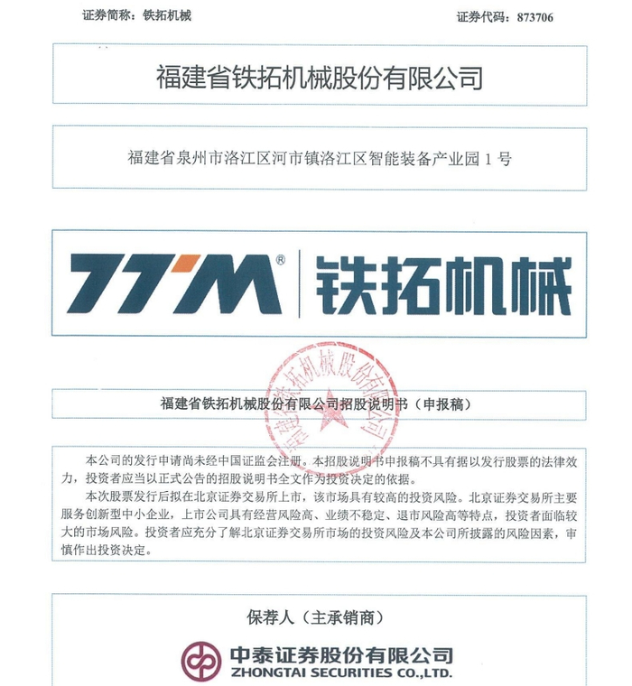 经全体参会内核委员投票表决,本保荐机构投行类业务内核委员会同意将铁拓机械本次发行申请文件上报北交所审核。