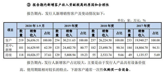 (3)逐个说明新设立公司、社保参保人数较低、无实缴注册资本等异常客户的合作背景、新设立即成为发行人客户的原因及合理性,说明客户规模及设备消化能力与向发行人采购的金额是否匹配。(4)结合同行业可比公司的客户稳定性,论证发行人客户变动是否符合行业规律,论证客户变动频繁对发行人持续经营能力的是否构成重大不利影响。(5)统计分析金额分层、新老客户分布等情况,说明新客户的获取方式、主要客户是否存在期后大幅亏损或经营异常情形,现有客户的交易如不具有可持续性的应对措施。(6)说明报告期内主要客户的经营业绩情况,客户是否有能力消化发行人销售的产品。