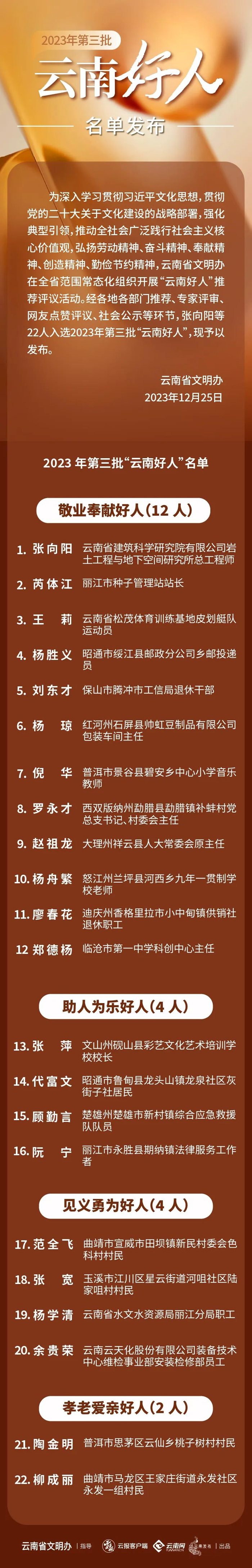 2023年第三批“云南好人”名单发布!有你认识的人吗?