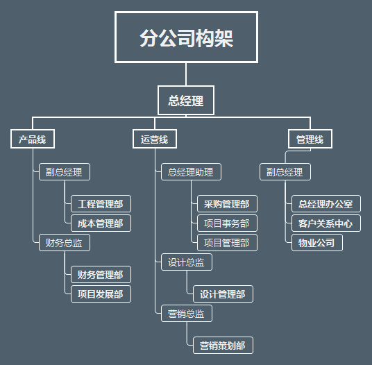 从该分公司的构架中可发现,一线公司在运营上拥有非常大的自主权,这也是符合地产行业特点的机制。而区域总部的作用则是代表集团为这个区域的所有一线公司做指导和管理。