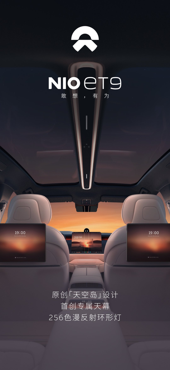 与“行政桥”呼应,蔚来ET9车顶纵向的“天空岛”设计搭配首创专属天幕,与256色漫反射环形灯,将专属而开放的车内空间体验变得更加立体,更加完整。