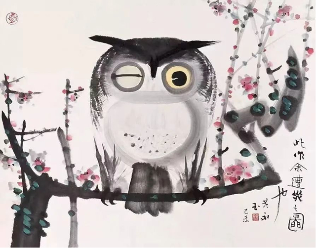 ——黄永玉画的猫头鹰,题曰“此作余遭灾之图也”。