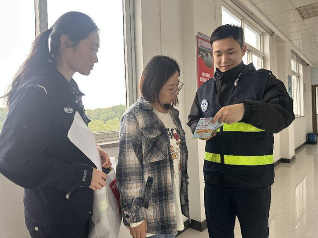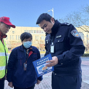 “大爷您好,这几天降温了,您一定要穿暖和点。这是反电信网络诈骗的宣传册,您孙子回来让他给您好好读一读这个内容”。