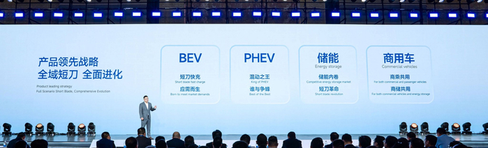在电池日当天,蜂巢能源针对BEV、PHEV、商用车和储能不同细分市场推出了“全域短刀,全面进化”战略,并在乘用车领域全球首推全系短刀快充迭代升级产品,覆盖2.2C到5C全场景应用。