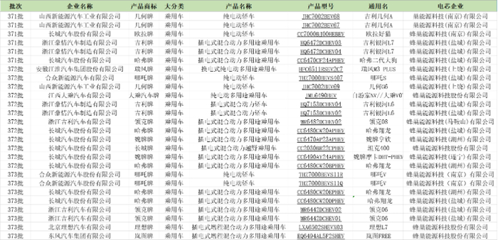 目前,蜂巢能源已经拥有与长城、吉利、理想、岚图、小鹏、斯特兰蒂斯等国内外主流车企17项重点项目。在近期国家工业和信息化部公布的第371批、372批、373批《道路机动车辆生产企业及产品公告》中,有20余款新能源乘用车车型搭载了蜂巢能源的短刀电池,其中插电混动车型超过10款。