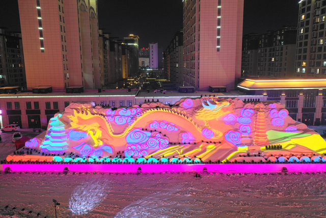 梅城雪街。依托爱民大街打造“龙腾丝路·雪秀梅河”梅河雪街,雪雕覆盖爱民大街河湖连通区域,共有58座中大型雪雕、500个模具小雪雕以及绵延2000米的灯光星河。全街以文化特色、形态各异、大小不一的微雕景观为主线串联,分为梅河气象、龙腾丝路、美好未来三个板块。通过雪雕、雪墙、声光电等多种形式,让笔直宽敞的大街、高大挺拔的银杏树、河湖连通的城市内河在冬日焕发勃勃生机,打造充满梅河风情、富有梦幻气息的现代化不夜街。另外,在高速公路梅河口南出口还建设了一座大型雪雕,总长105米,展现省委赋予的打造“五座城”新定位、梅河口取得的荣誉等元素。整个雪街展示时间从2024年1月1日至2024年2月末。