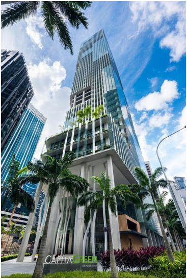 CapitaGreen是一座40层高的甲级办公楼,获得新加坡建设局颁发的绿色建筑标志铂金奖和通用设计标志铂金奖,大厦顶部的花瓣状结构可以吸入冷空气,降低空气处理机组的负荷。