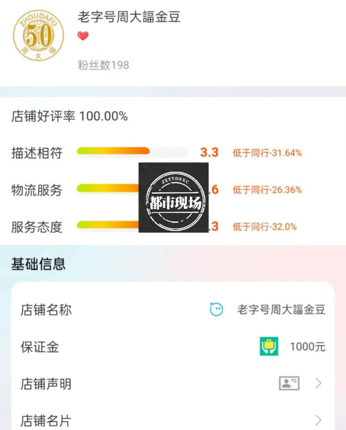 在之前《都市现场》报道中,消费者小侯反映自己通过淘宝百亿补贴店铺“老字号周大諨金豆”,分两笔订单购买了单价为398元一克的小金豆共6颗。在收到1颗金豆后,小侯发现这颗金豆经过火烧后竟然变黑了;而通过相关鉴定,这颗带有吊牌和鉴定证书的金豆含金量为0 ,被鉴定为非贵金属。