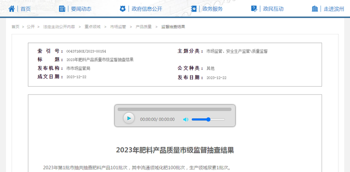 【山东滨州】2023年肥料产品质量市级监督抽查结果