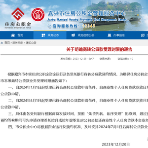 浙江嘉兴:明确2024年商转公贷款受理时限