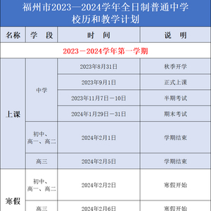 2023年9月1日正式上课,2024年1月24日学期结束,寒假开始。