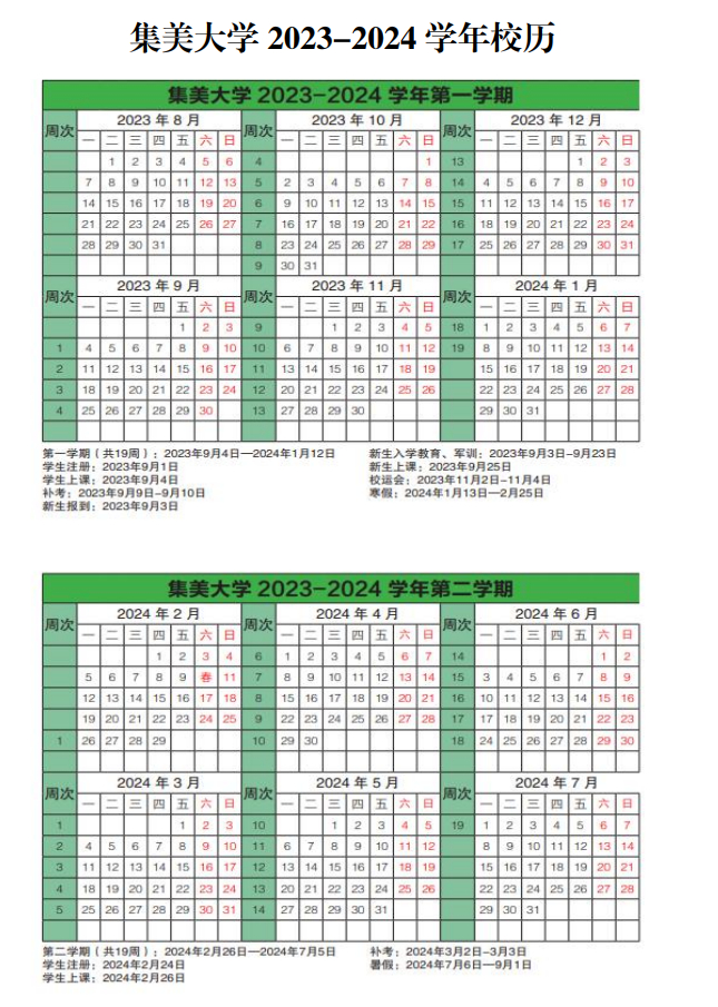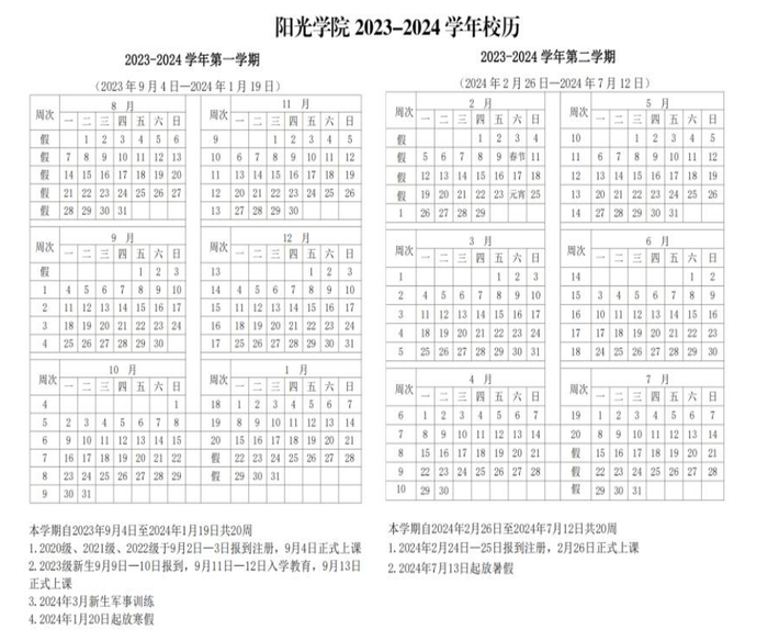 2024年2月25日(星期日)注册,2月26日(星期一)正式上课,2024年6月30日(星期日)学期结束。