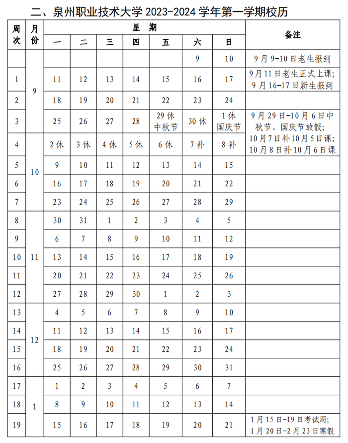 2023年9月1日正式上课,2024年1月19日学期结束,寒假开始。