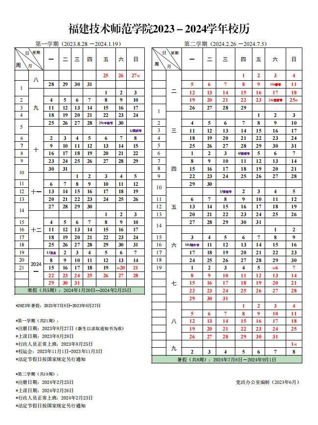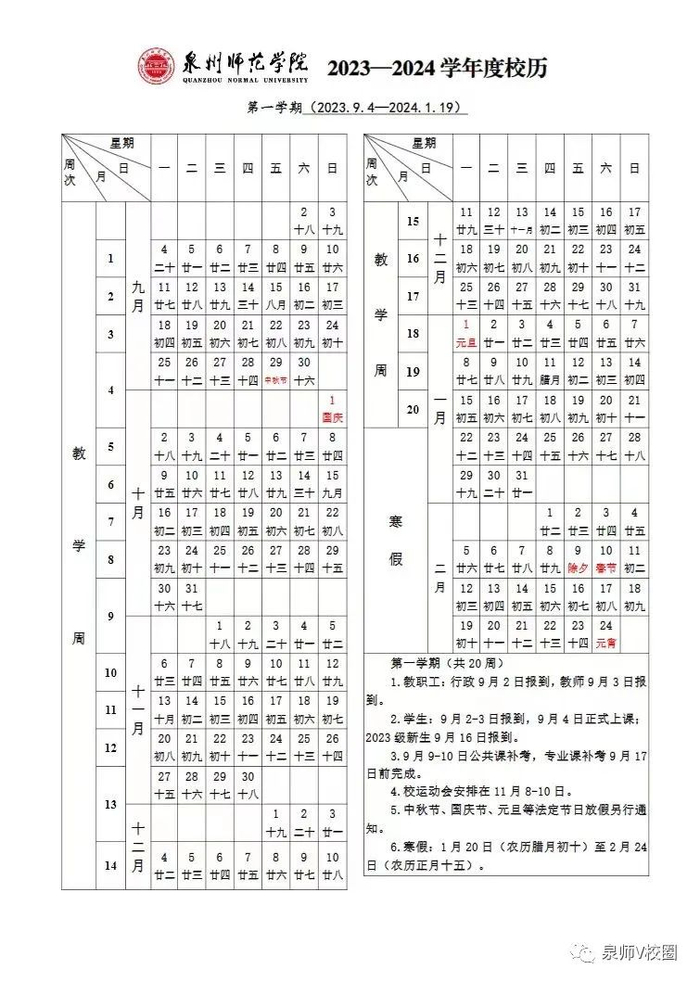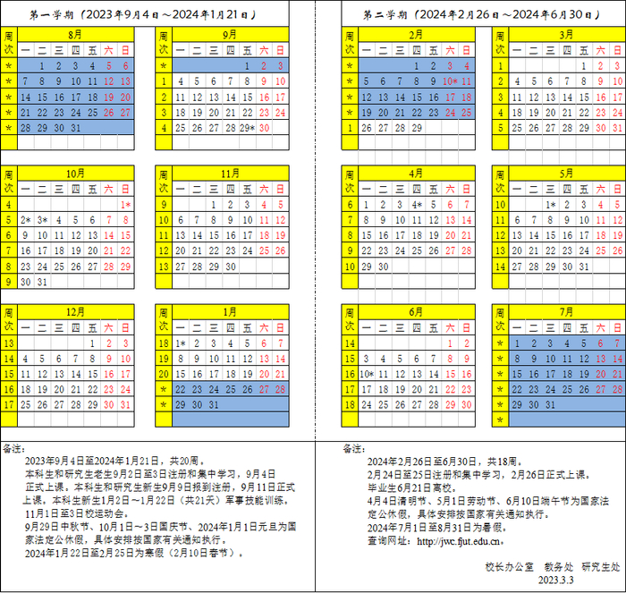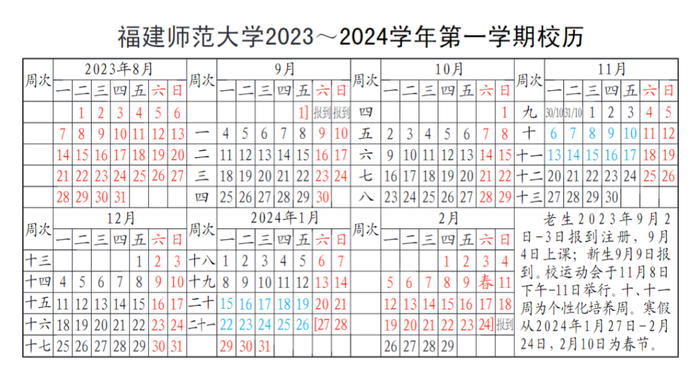 2023年9月1日正式上课,2024年2月2日学期结束,寒假开始。