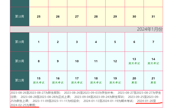 寒假:2024年1月27日(星期六)至2月24日(星期六)寒假。